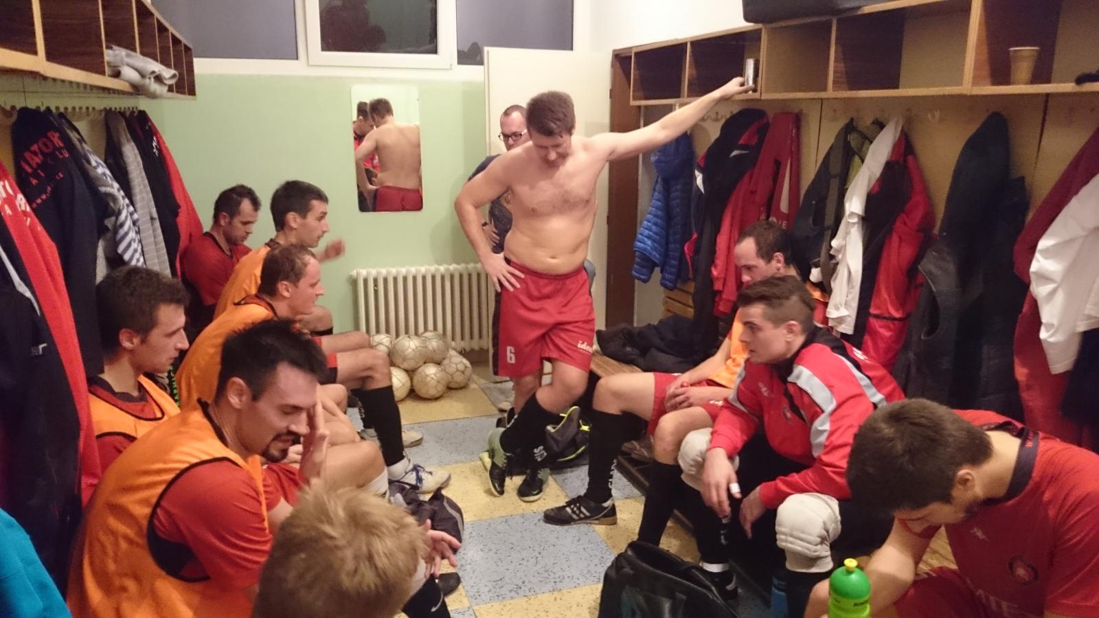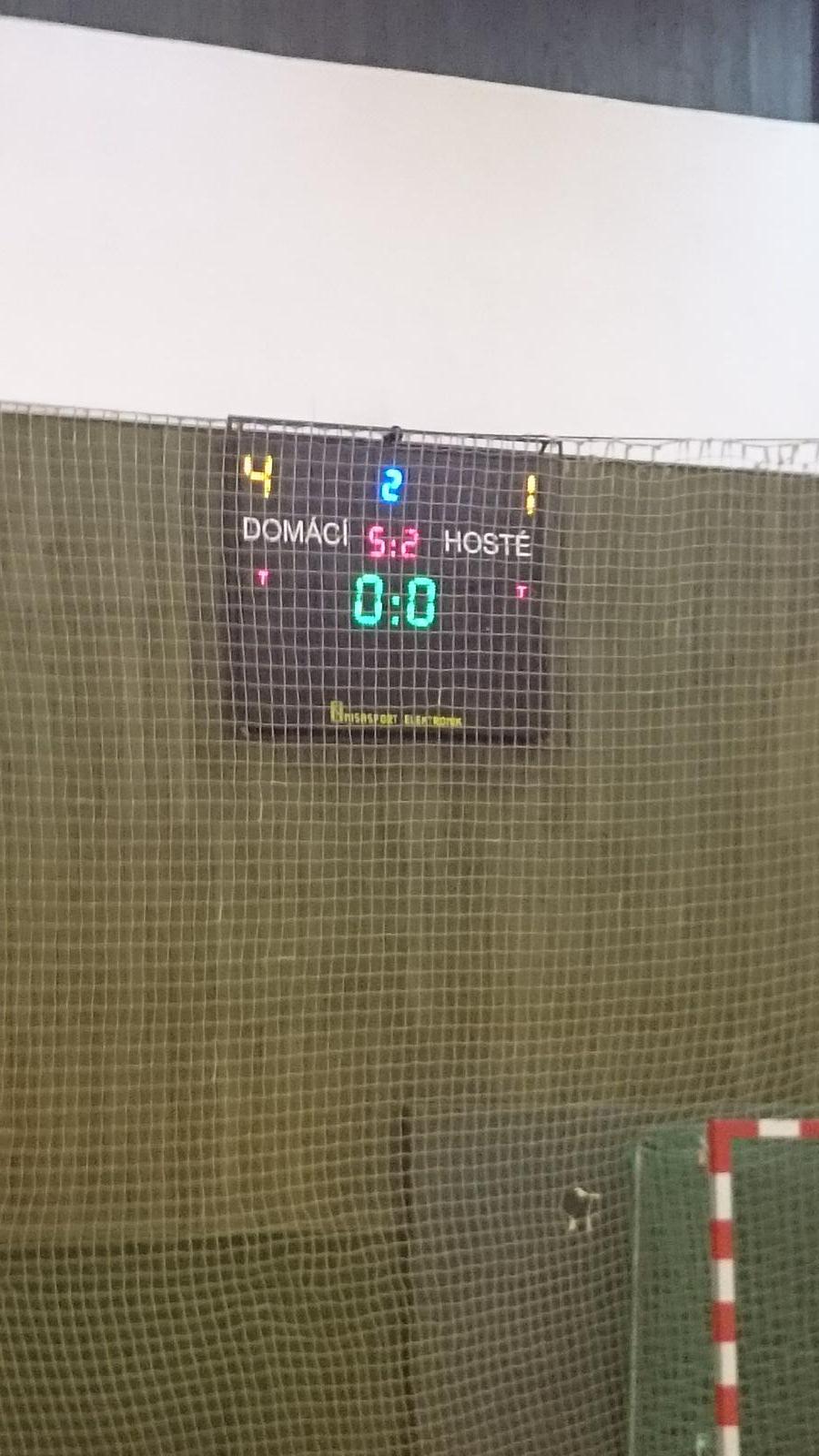 Za tohoto stavu s časem něco málo přes 5 minut do konce zápasu Glads vyrukovali se hrou v pěti, když v zápase výborně chytajícího Koudise nahradil veterán Vojta. Jediný fanoušek Glads v hale (tj. Michalův krang) však mohl v této chvíli zaplesat snad jen nad situací, kdy hostující hráč podklouzl na mastné skvrně, kterou na ultralepivé palubovce domácích zanechal právě Michal, když nešťastně šlápl na balon a svezl se k zemi. Celek Oslavan hrozil po nepřesných zakončeních Gladiátorů a nakonec se po velké hrubce při střídání našich golmanů dočkal, když po dlouhém výhozu zakončil domácí hráč do odkryté brány.
