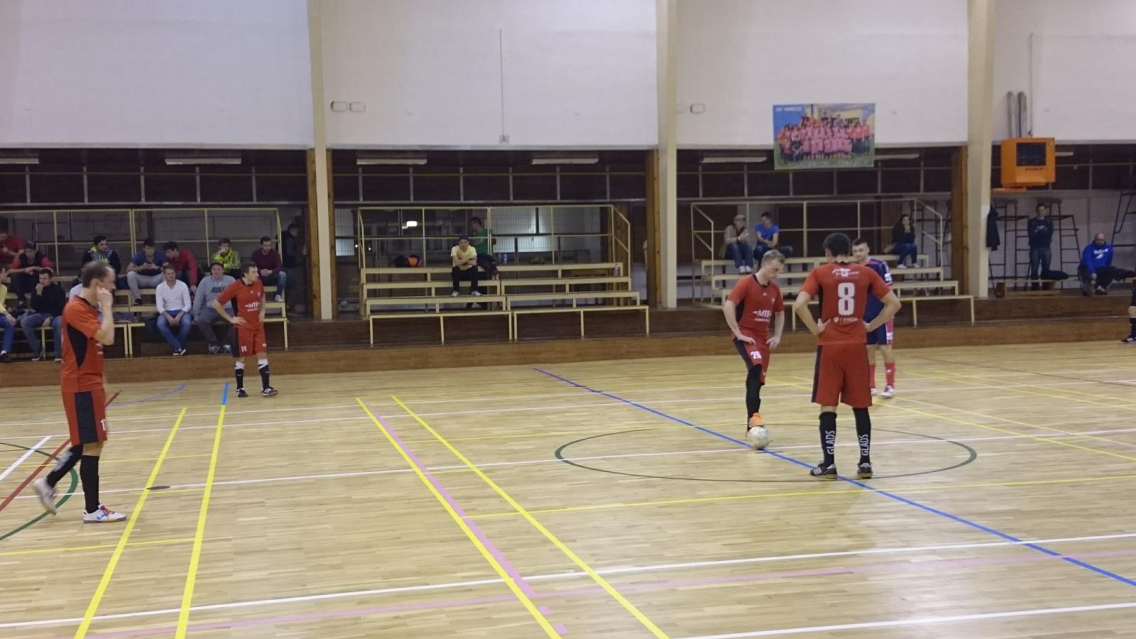 Ačkoliv se začátek zápasu zdržel o zhruba 8 minut, byli to právě Glads, kteří byli od začátku prvního poločasu aktivnějším týmem. Soupeř se prezentoval rychlou fyzickou hrou, avšak dobře připravení hosté dokázali tvrdou hru domácích eliminovat a naopak vyráželi do nebezpečných protiútoků. Těm však často chyběla kvalitnější předfinální fáze. Když se v průběhu prvního poločasu neujal ani Pavlův pokus o přelobování golmana po rychlém přečíslení ani Majklův pokus o dorážku při nástřelu na zadní tyč, skončil první poločas výsledkem 0:0. Nutno podotknout, že v prvním poločase to byli právě hostující Gladiátoři, kteří domácí herně přehrávali.