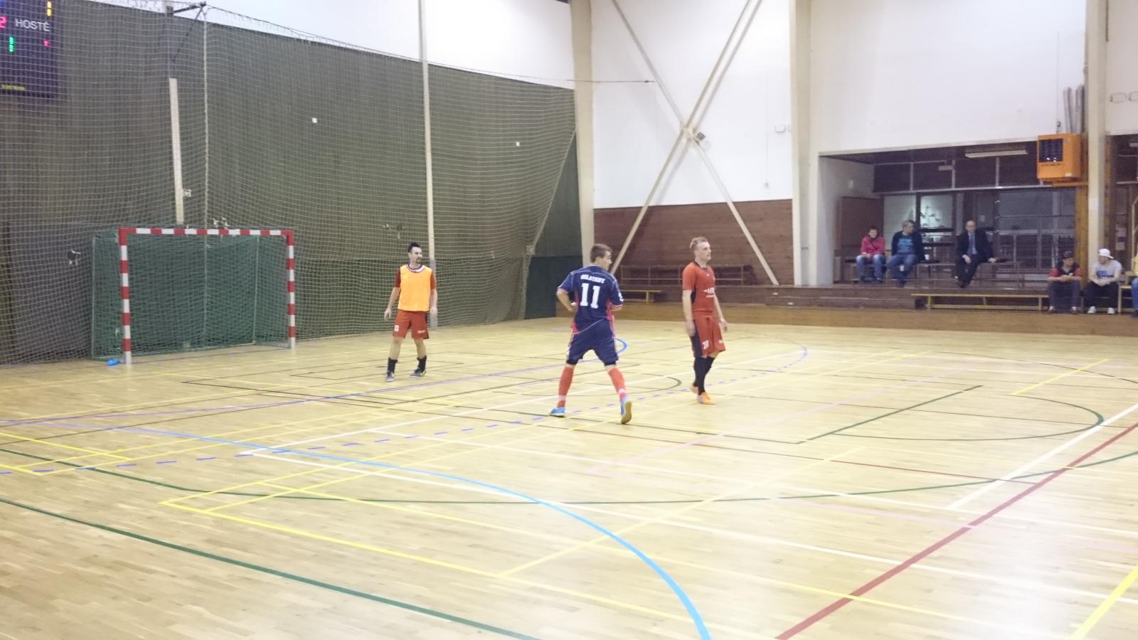 Za tohoto stavu s časem něco málo přes 5 minut do konce zápasu Glads vyrukovali se hrou v pěti, když v zápase výborně chytajícího Koudise nahradil veterán Vojta. Jediný fanoušek Glads v hale (tj. Michalův krang) však mohl v této chvíli zaplesat snad jen nad situací, kdy hostující hráč podklouzl na mastné skvrně, kterou na ultralepivé palubovce domácích zanechal právě Michal, když nešťastně šlápl na balon a svezl se k zemi. Celek Oslavan hrozil po nepřesných zakončeních Gladiátorů a nakonec se po velké hrubce při střídání našich golmanů dočkal, když po dlouhém výhozu zakončil domácí hráč do odkryté brány.