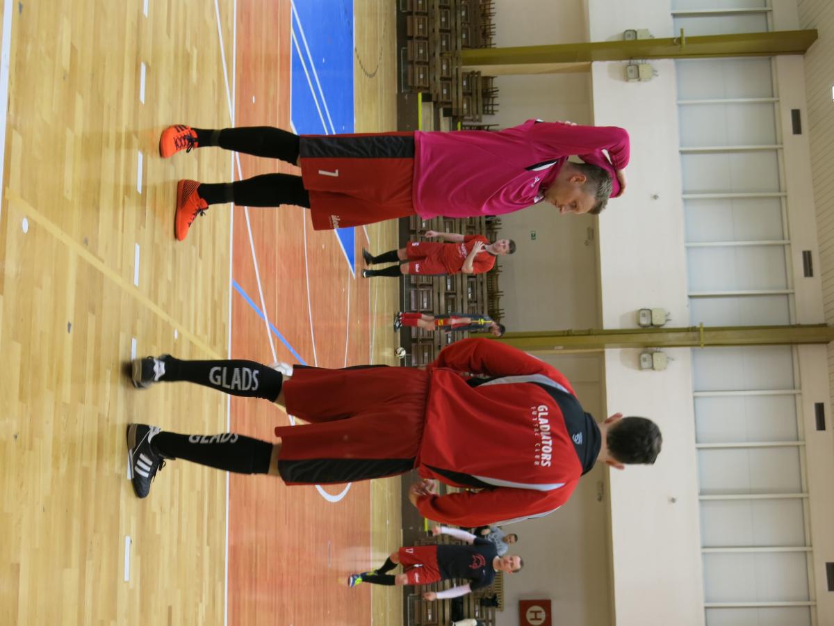 První poločas futsalového klání gól nepřinesl, když byl vidět z obou stran opatrný futsal. Glads urputně bránili a nechávali tempo hry na Květnici. Domácí sice drželi míč na svých sálovkách, nicméně pozornou obranu hostí nedokázali zaskočit.